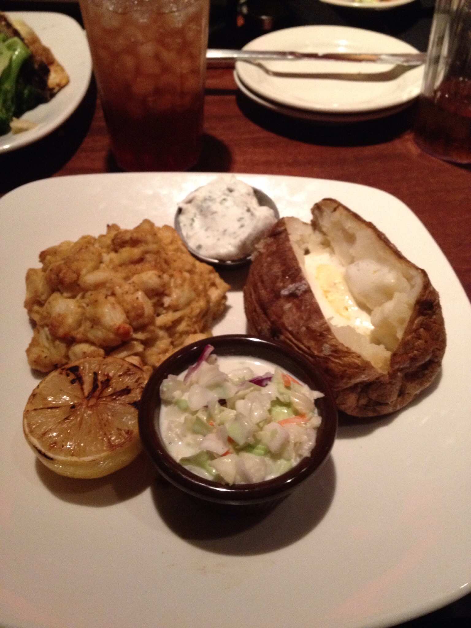 A Broiled Crab Cake – I LOVE crab cakes, and this one was very good. I didn’t need the tarter or cocktail sauces that were included on my plate for it. They were actually in the way. I ate the crab cake plain, it the way it came. I was very pleased with it.