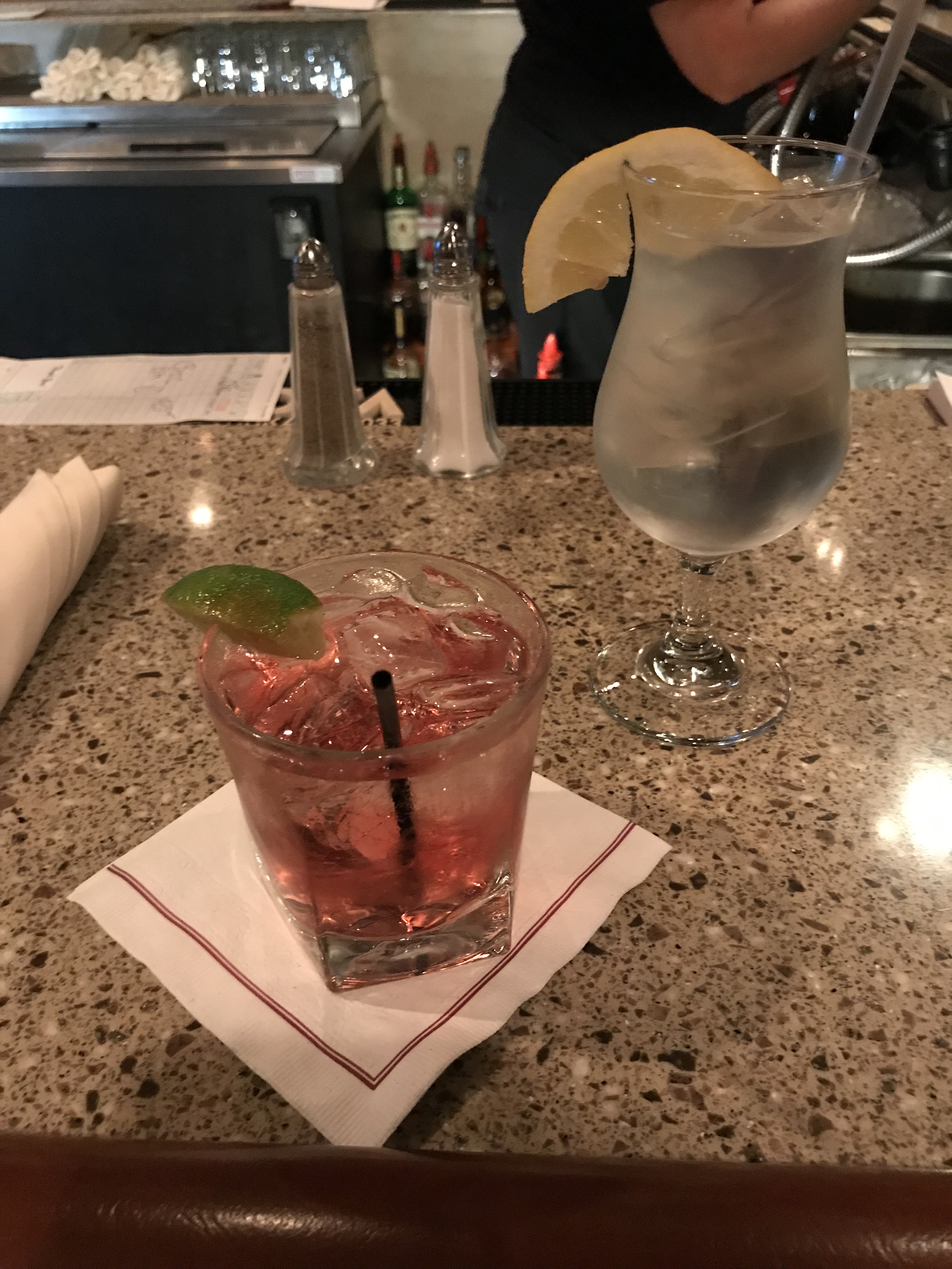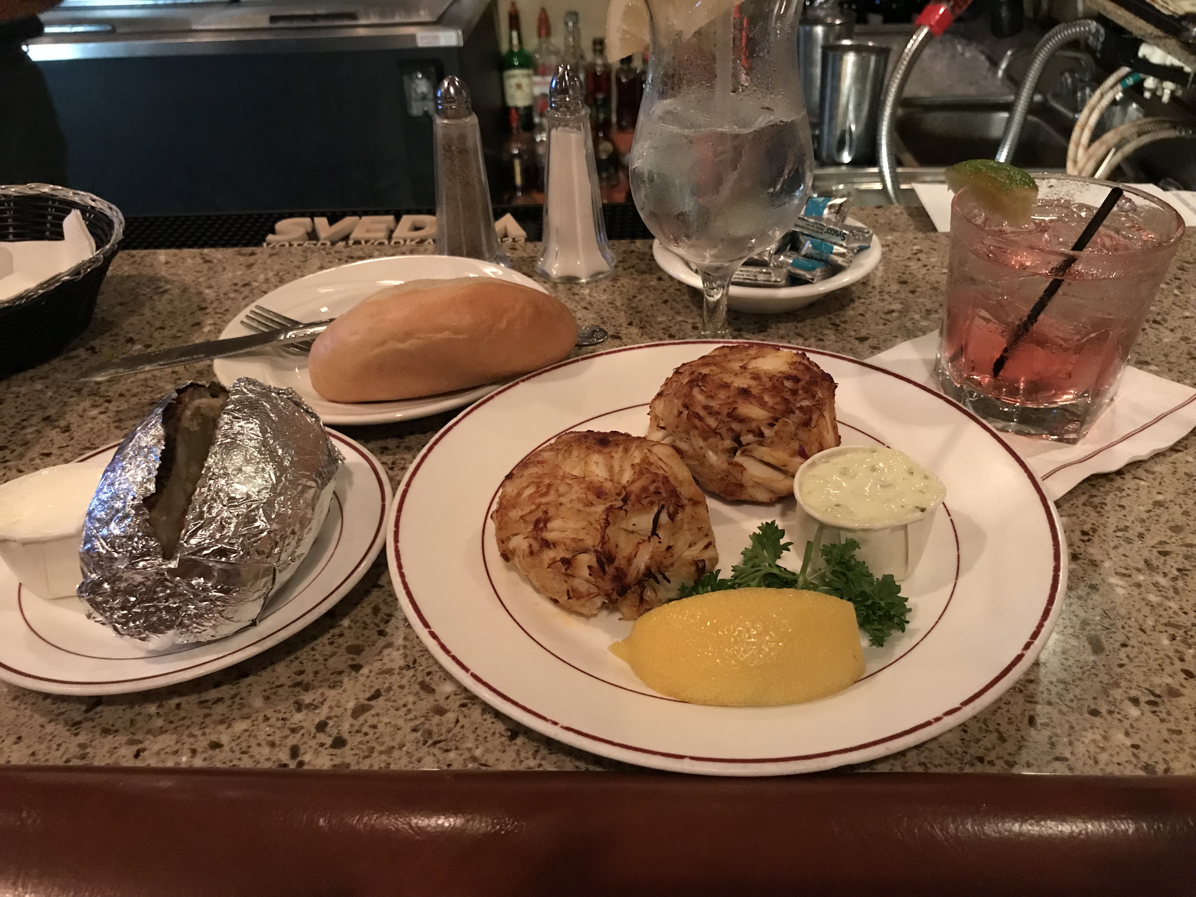 To top everything off for the evening, we ordered cocktails. I like vodka and was surprised to learn that this establishment doesn’t carry Grey Goose, which is my vodka of choice when I plan to juice it with cranberry. Their staple was Stoli. I didnt drive all the way down here to drink Stoli..I don’t even do that locally. So for me, my substitute was Belvedere. My friends substituted theirs with Svedka. Both ere generous pours. My cocktail of Belvedere Vodka, cranberry juice and a splash of pineapple was $10.25.